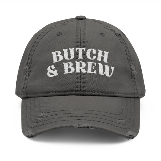 Butch & Brew Distressed Dad Hat – Bold Queer Coffee Culture