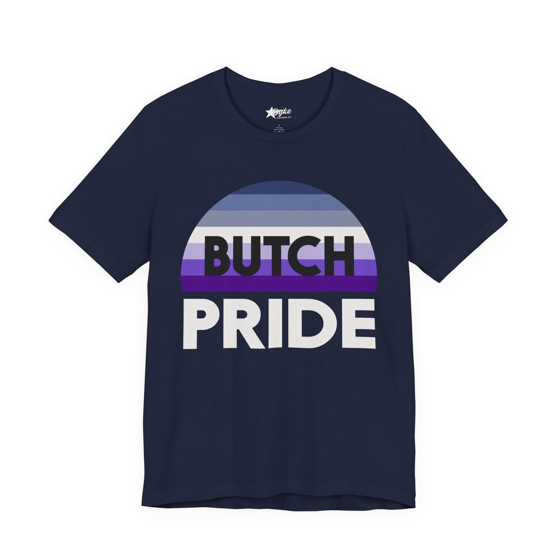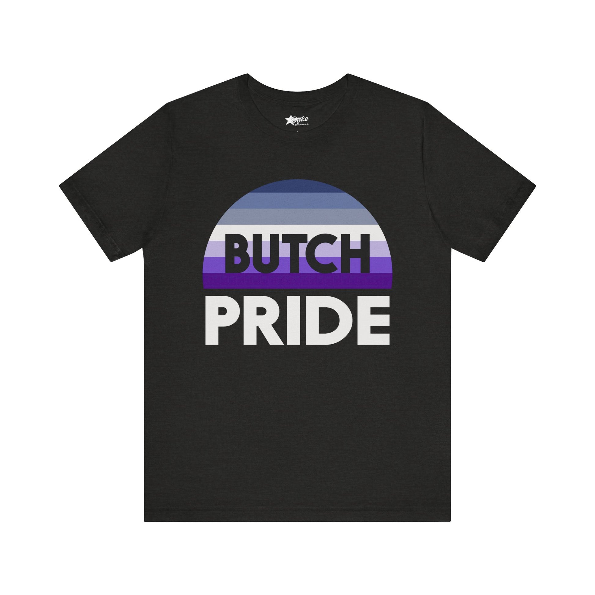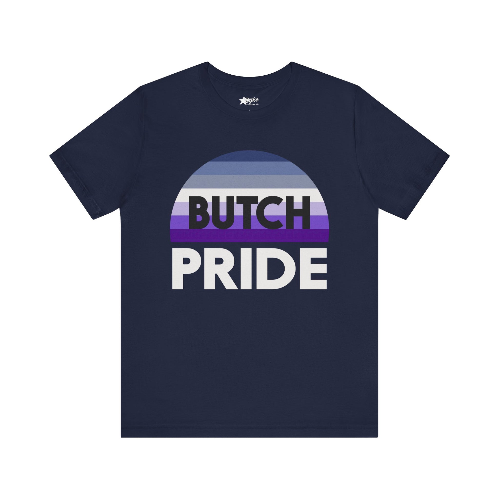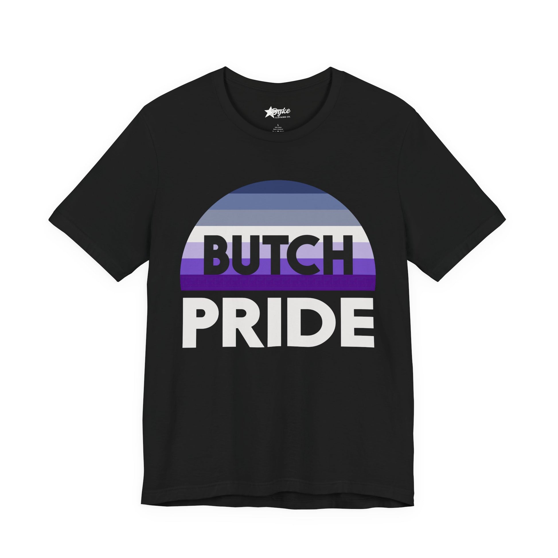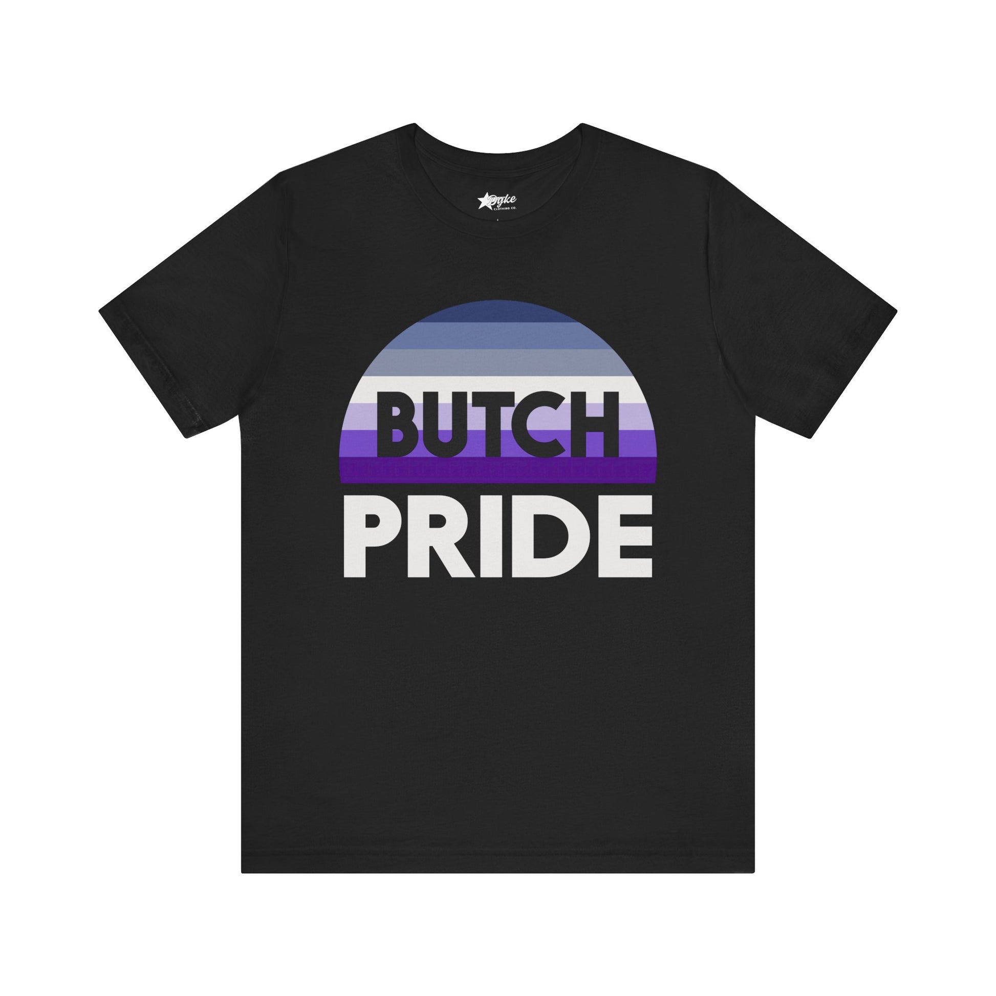 Celebrate your pride loud and unapologetic with the Butch Pride T-Shirt. Featuring the iconic Butch flag in a bold retro-inspired half-sun design, this shirt makes a clear statement of identity, visibility, and strength.