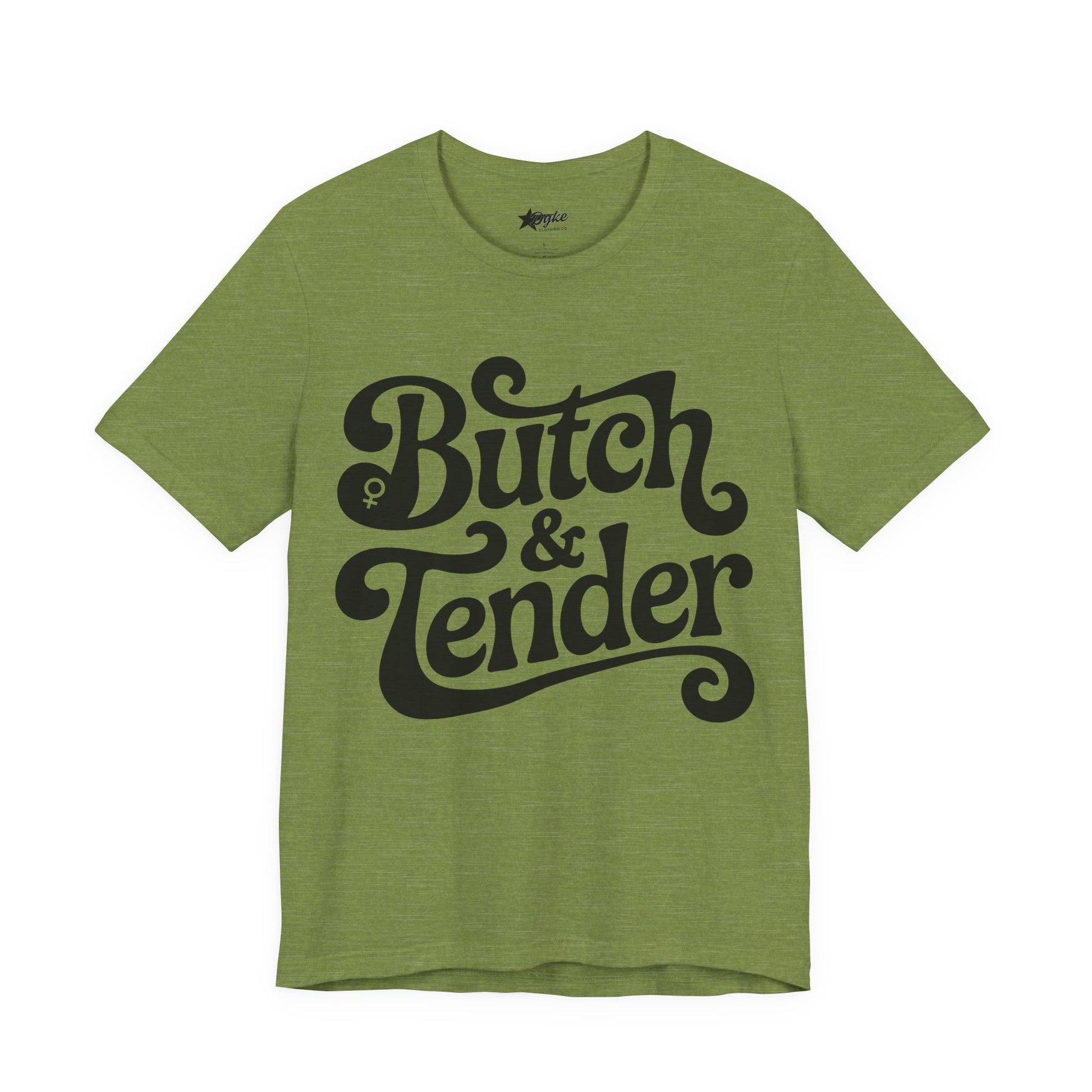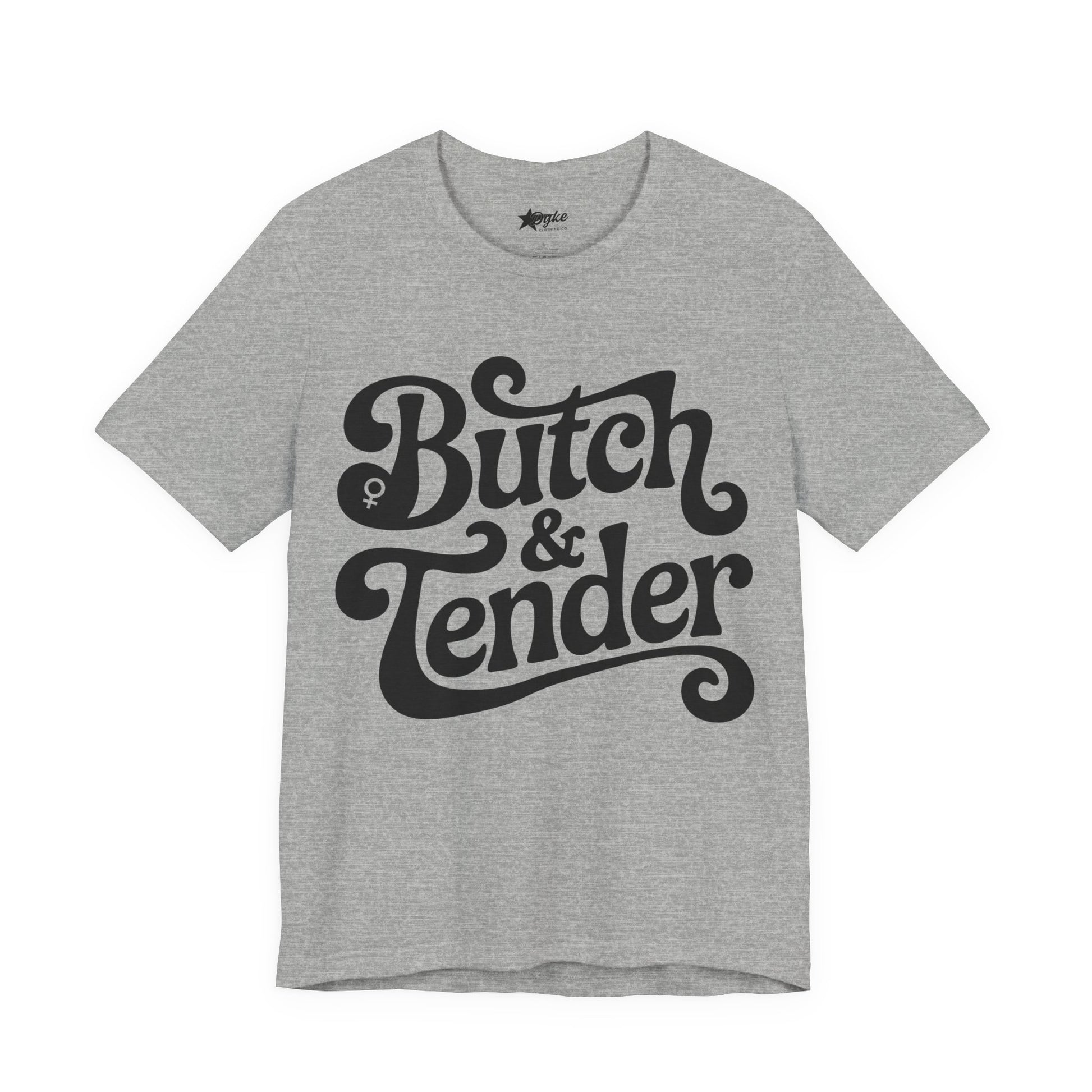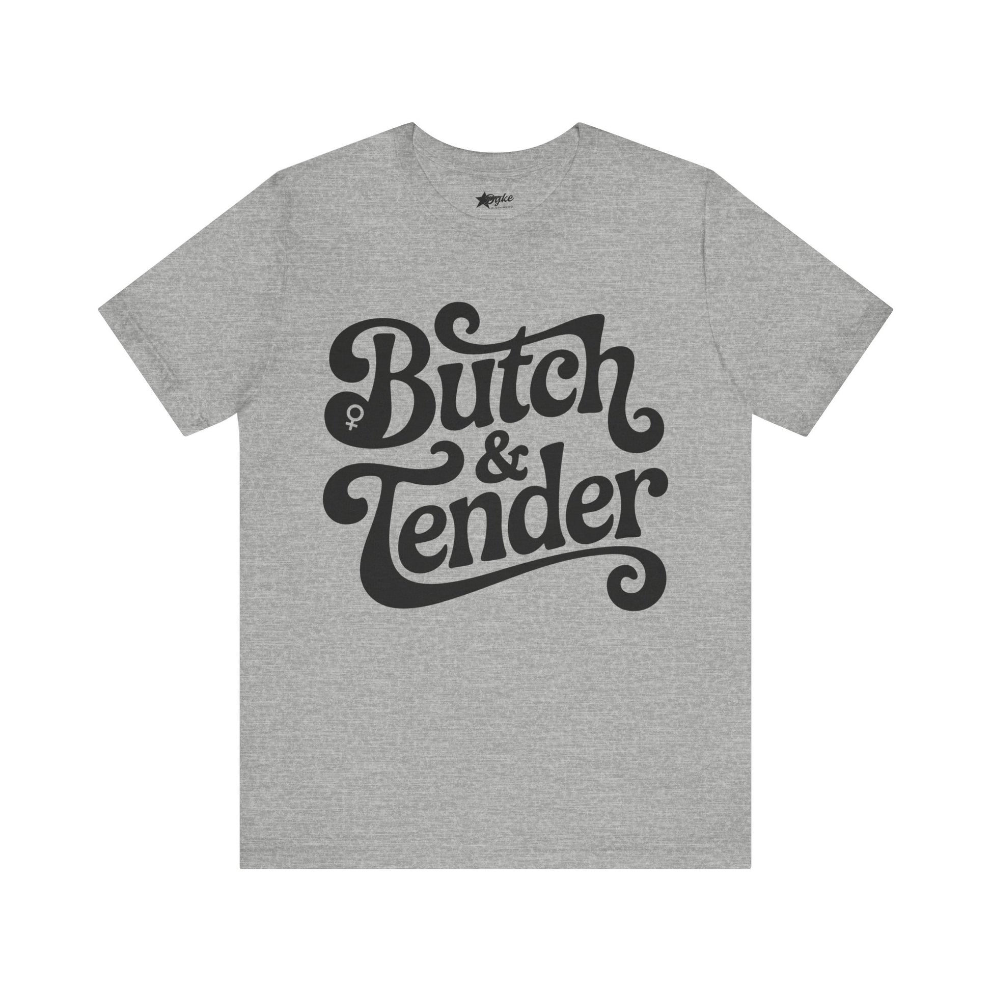 Celebrate the strength and softness of sapphic identity with this iconic Butch & Tender Tee, an exclusive design from Dyke Clothing Co.