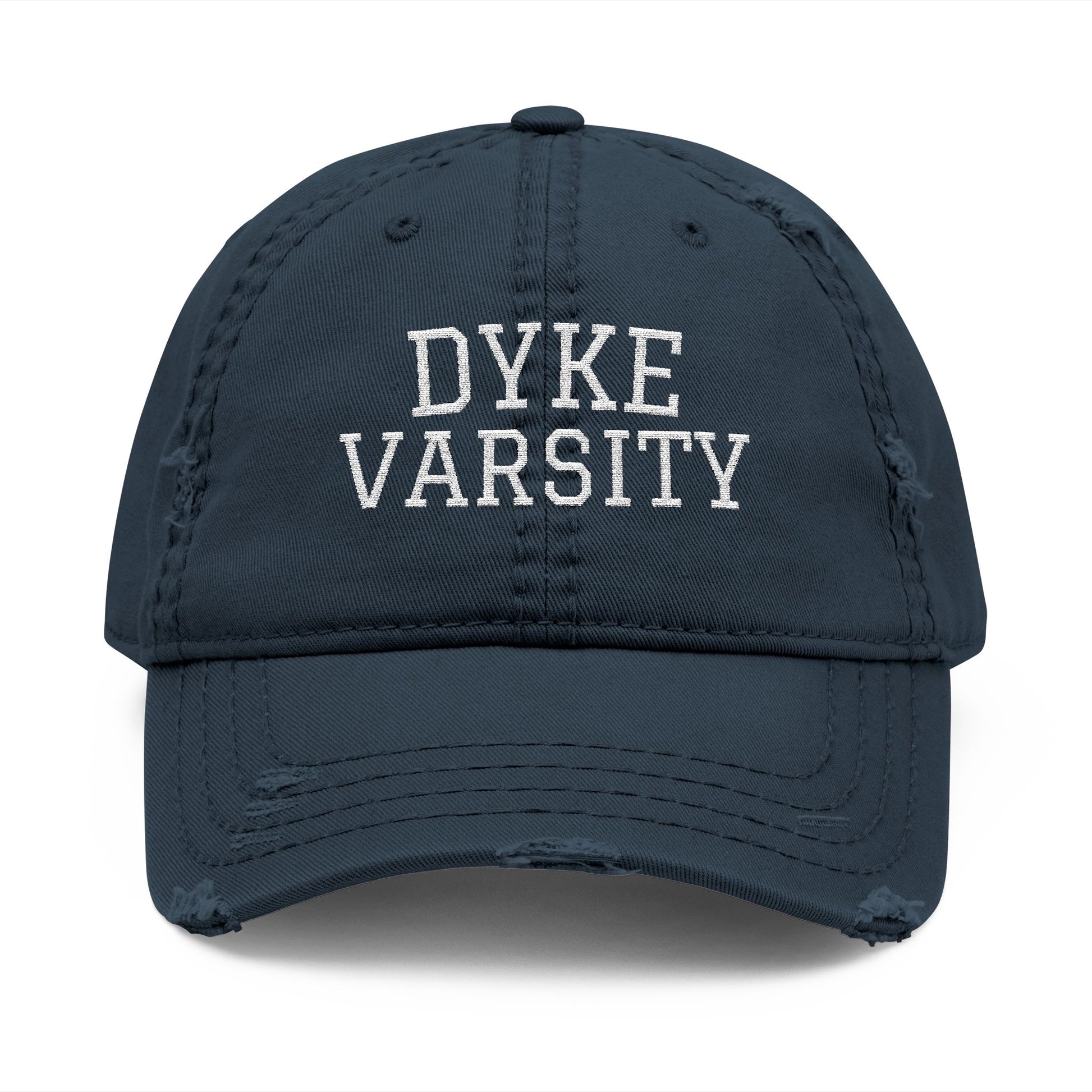 Dyke Varsity Distressed Dad Hat – Bold Lesbian Pride Embroidery