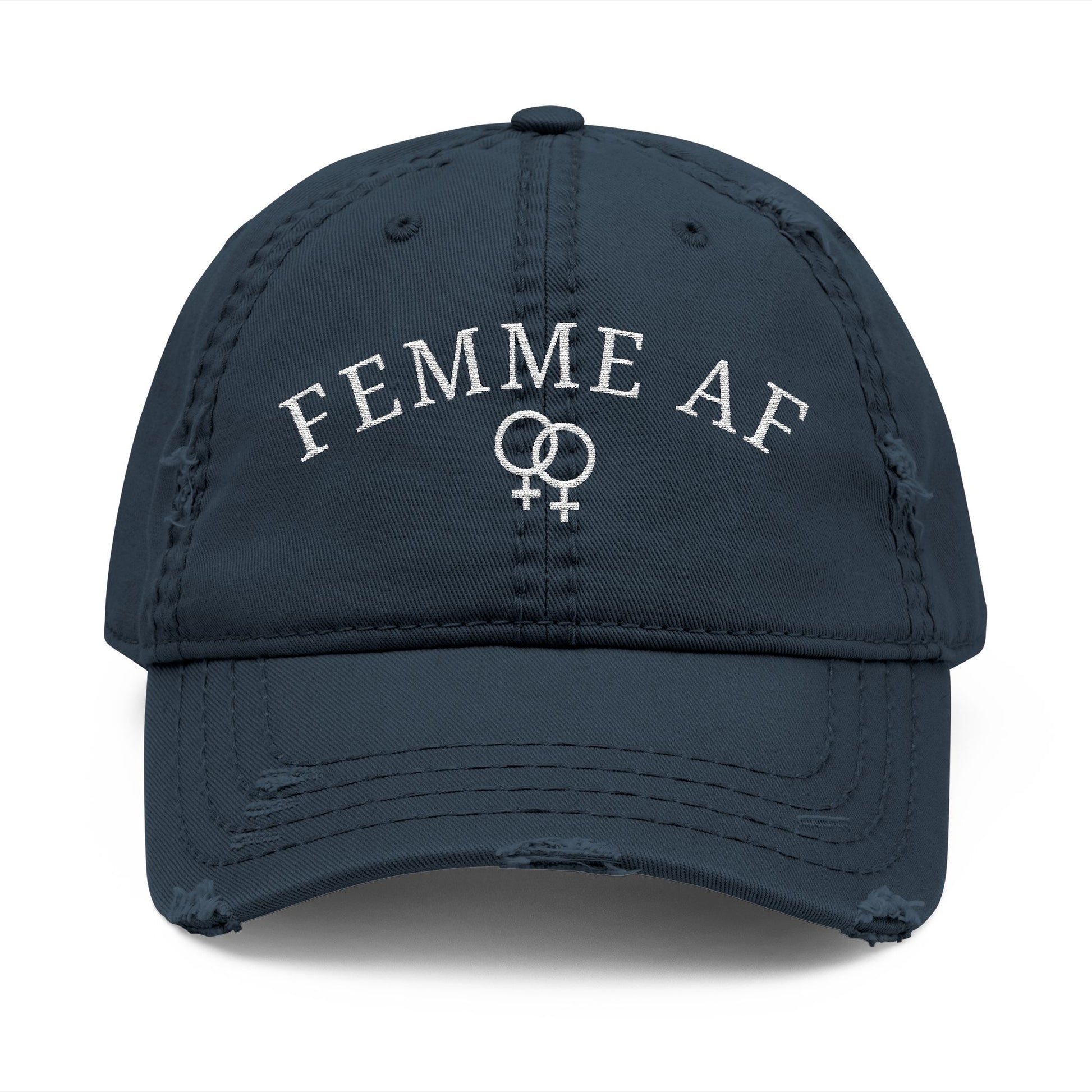 Femme AF Embroidered Distressed Dad Hat – Lesbian Pride Baseball Cap