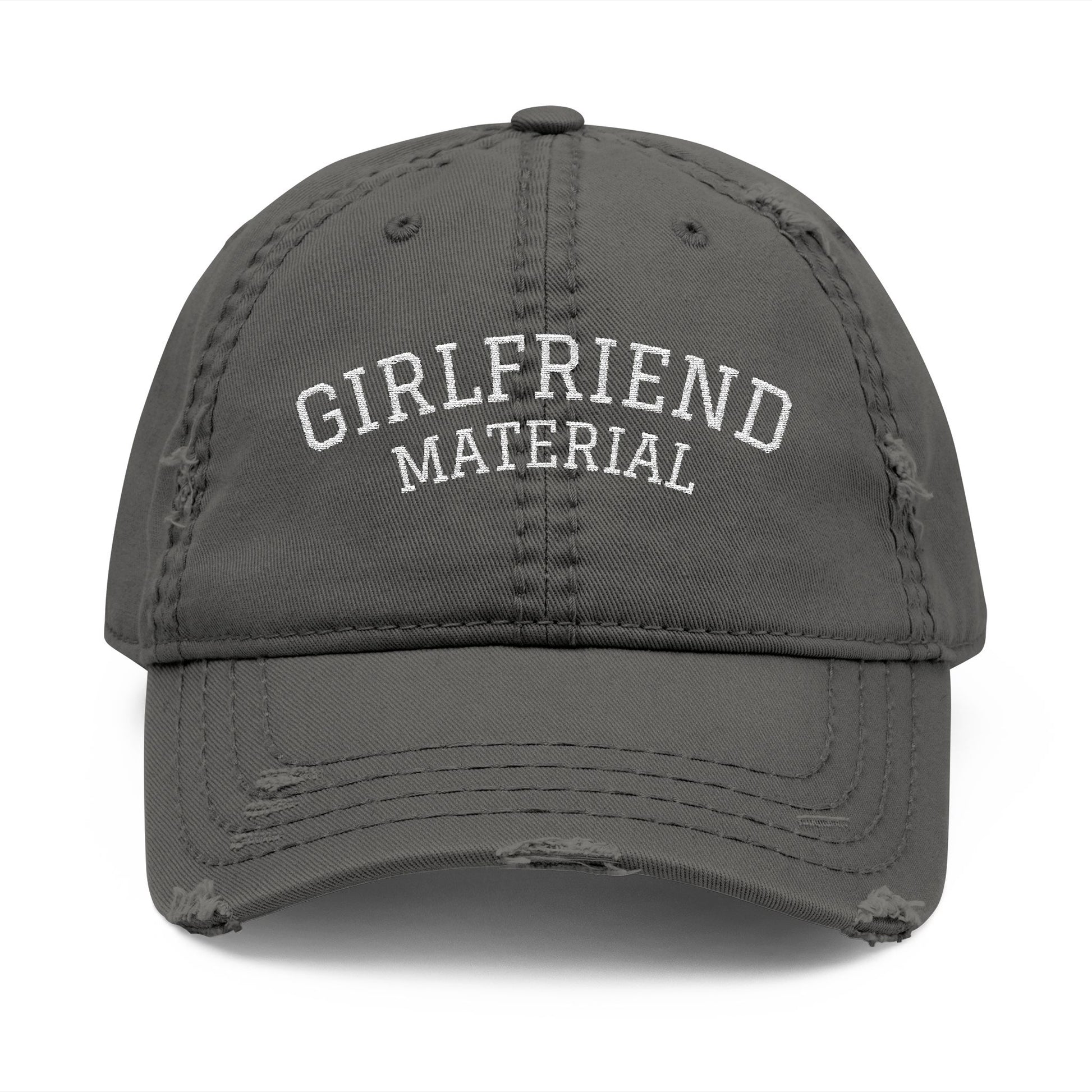 Girlfriend Material Distressed Dad Hat – Lesbian Pride Embroidered Cap