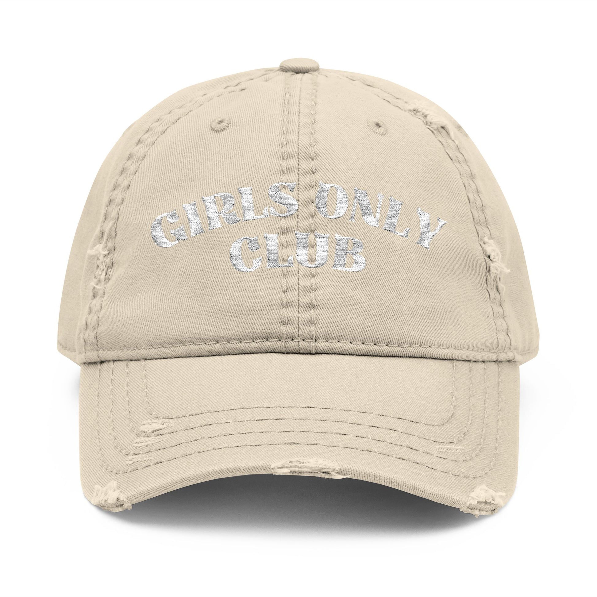 Girls Only Club Distressed Dad Hat – Lesbian Pride Embroidered Cap