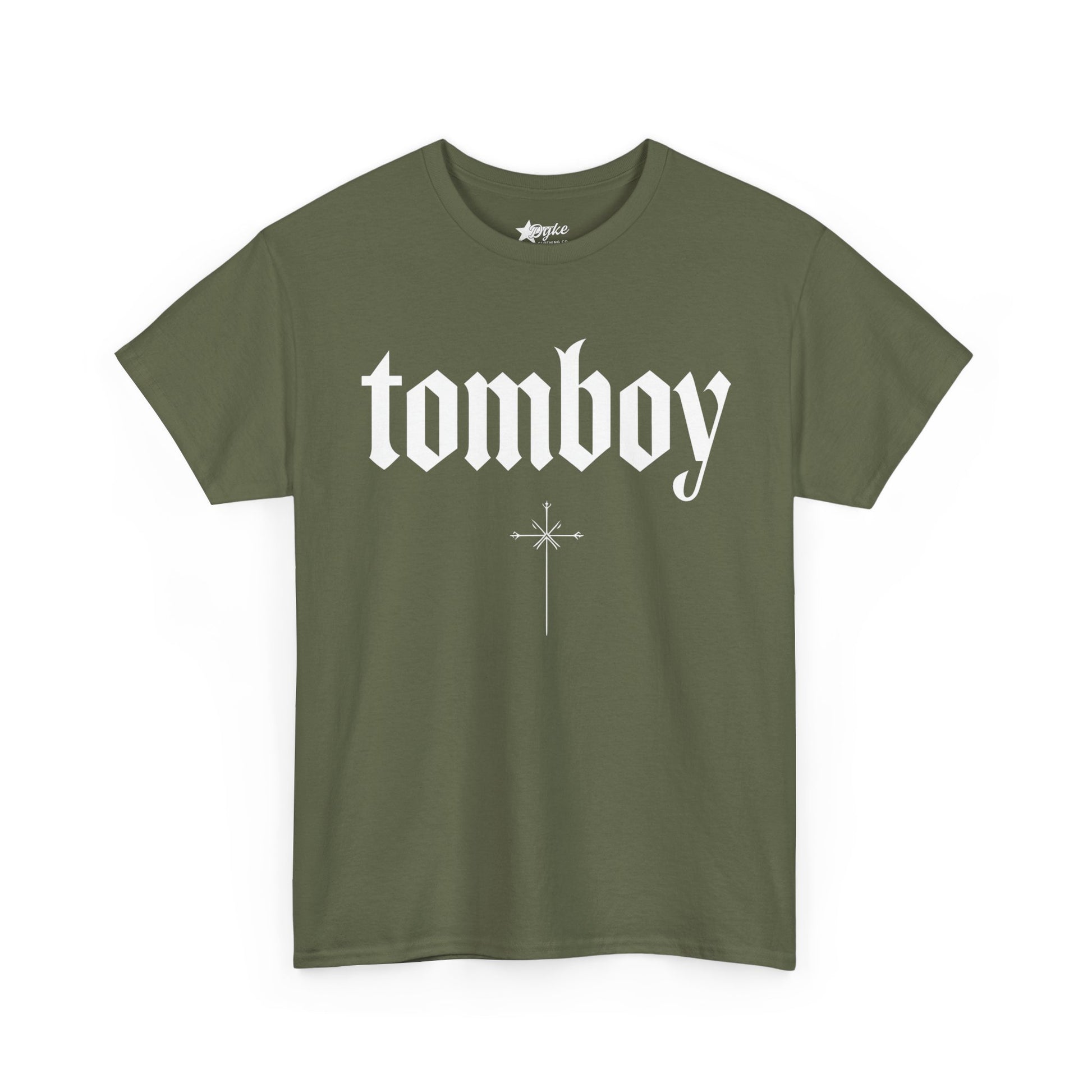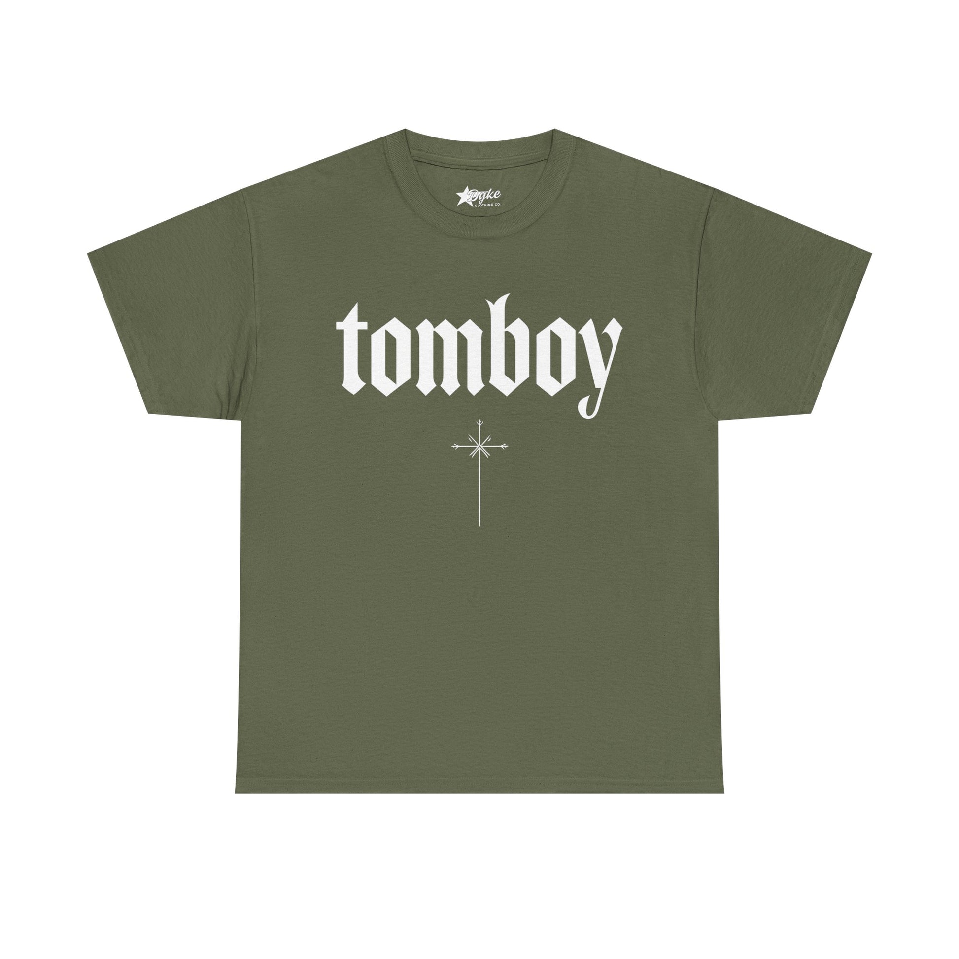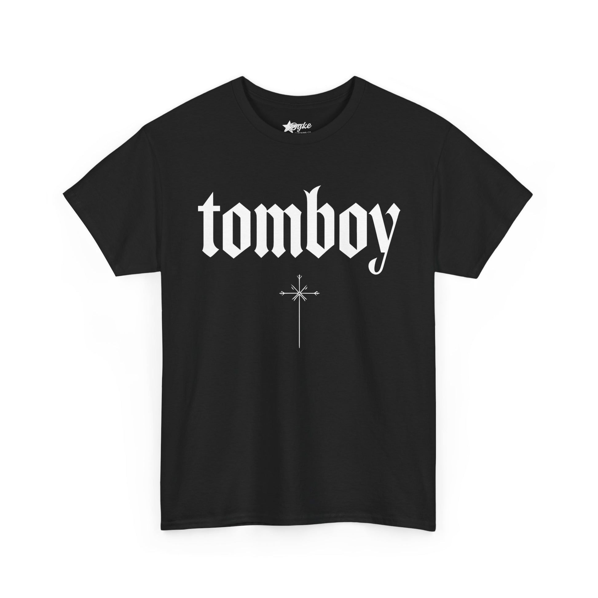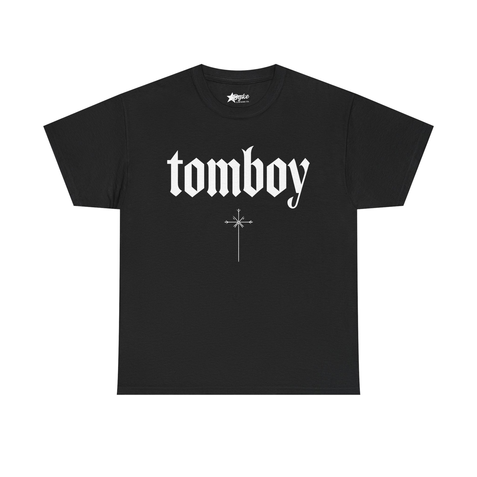 Embrace your edge with our Tomboy Gothic Tee - a clean, confident statement for those who live outside the norm. Featuring a bold gothic-style font and minimalist cross accent, this tee pairs effortlessly with denim, boots, or your favorite jacket.
