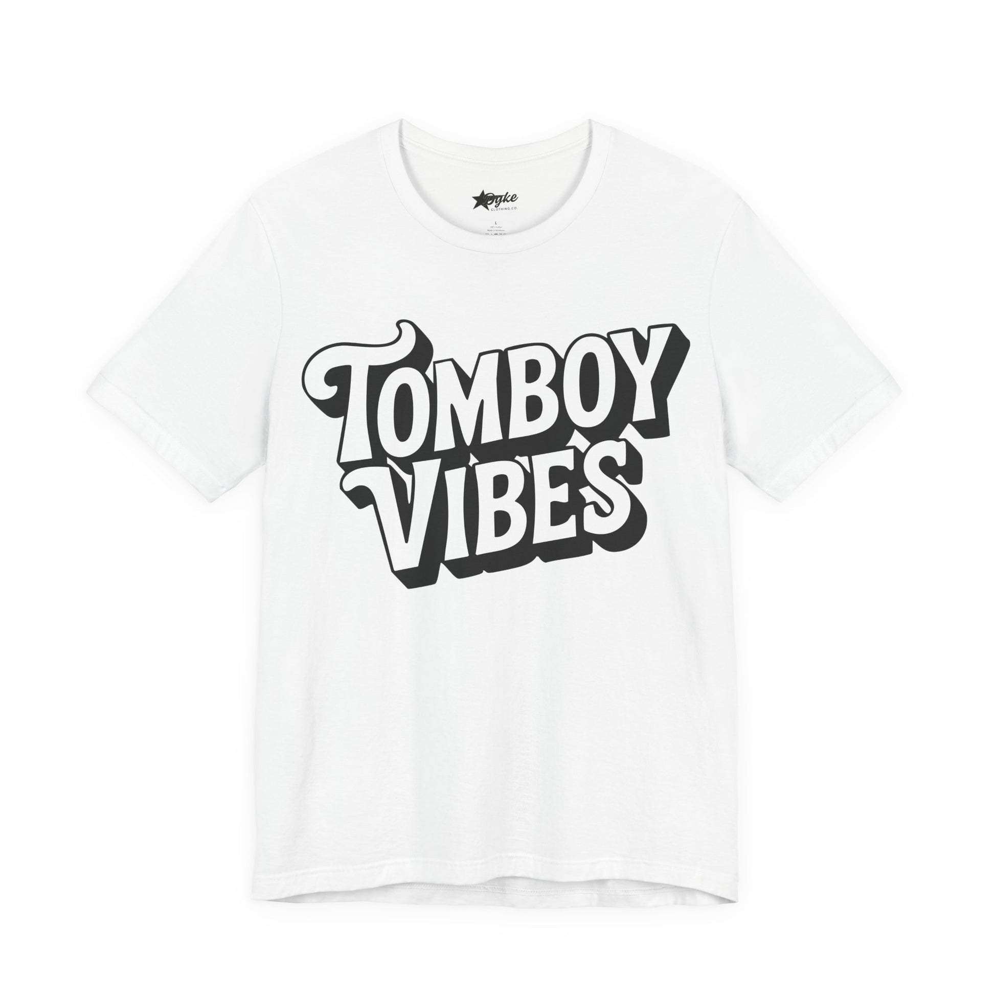 Celebrate unapologetic style and identity with the Tomboy Vibes T-Shirt. This shirt features a retro-inspired graphic in striking black text. Perfect for everyday wear, Pride events, or just showing off your queer confidence.
